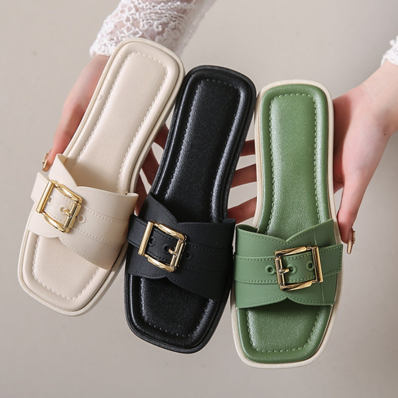 Where clean lines meet considered comfort. These sandals blend a sculptural square toe with soft orthopedic support, framed by a curved strap and glint of gold. Built for slow mornings, long walks, and everything in between.