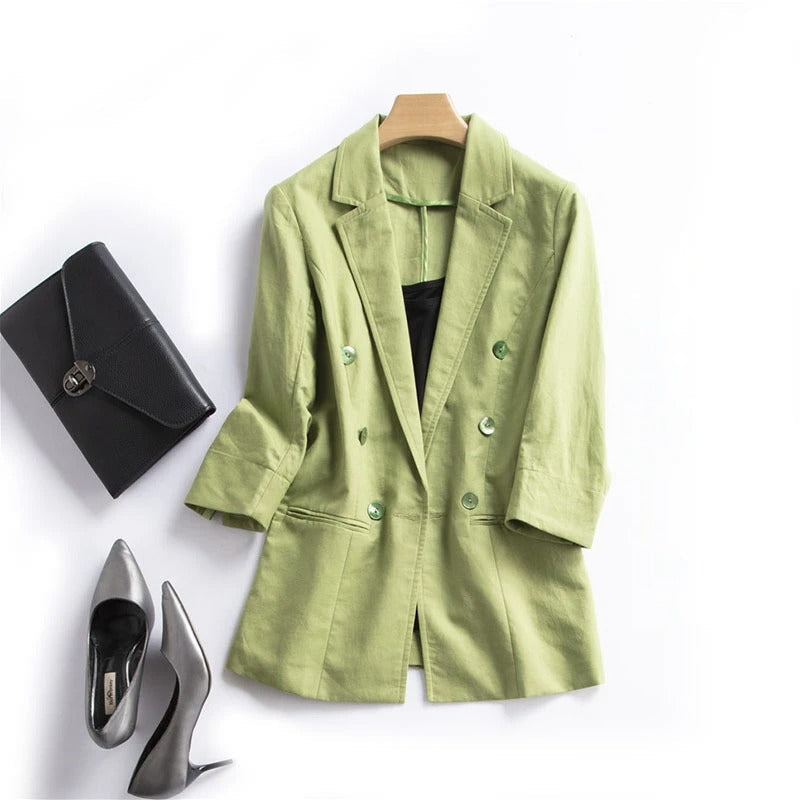 Relaxed tailoring meets subtle detail in the Sienna Ruched Sleeve Blazer. Designed with soft linen texture and gathered arms, it’s made for layering through seasons.